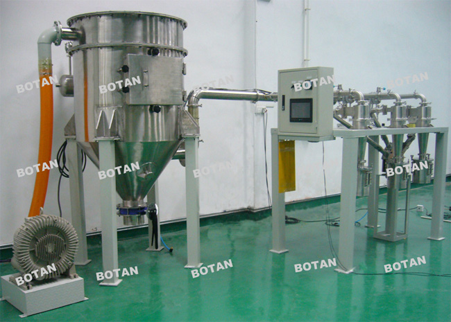 1.射流分級(jí)機(jī)包括一套非標(biāo)準(zhǔn)的旋風(fēng)收塵器設(shè)備,接粉部采用優(yōu)質(zhì)不304銹鋼。下部的收料大桶的接粉部分也采用優(yōu)質(zhì)不銹鋼。